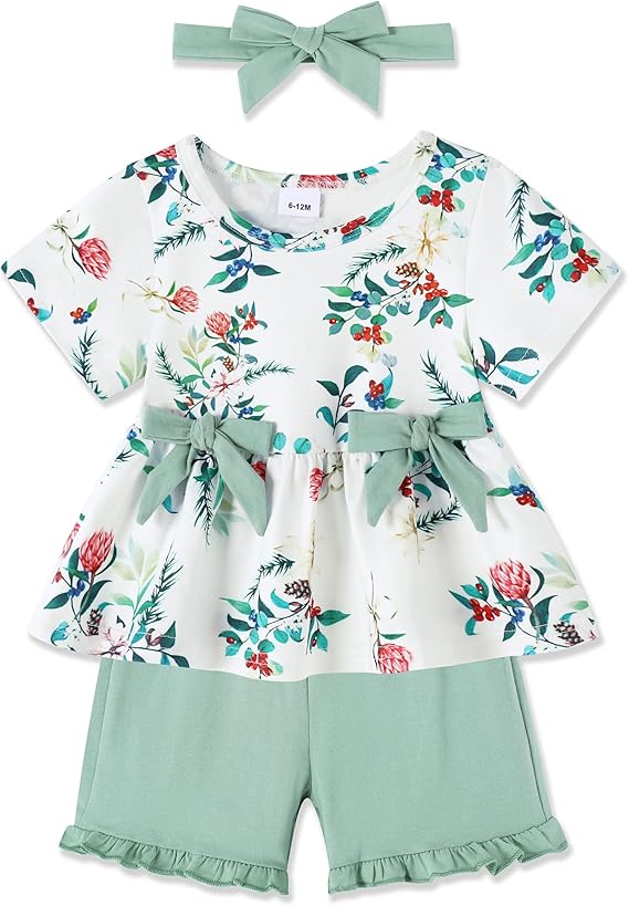 Toddler Baby Girl Clothes Summer Outfits Set, Short Sleeve T-Shirt+Casual Shorts+Headband 3Pcs Infant Girl Clothing