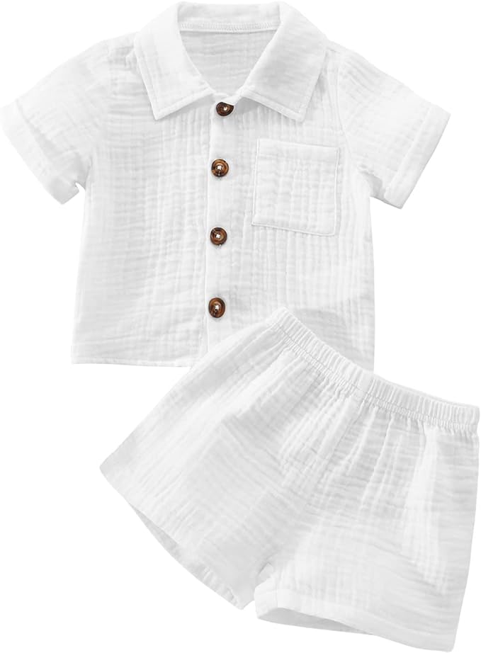 Baby Boys Clothes Set Toddler Infant Boys Button-down Shirt Tops + Cotton Gauze Shorts Summer Outfit 2PCS with Pockets