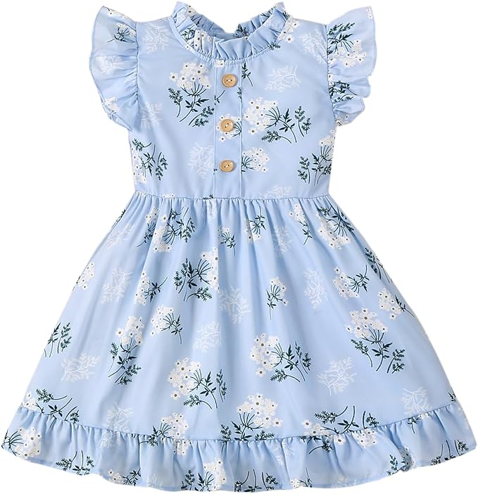 Toddler Baby Girl Sun Dress Wildflower Floral Seaside Beach Dress Overall Outfits Onepiece