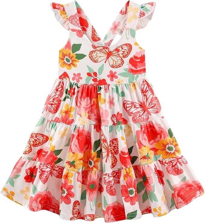 Baby Girls Tiered Dress Flutter Sleeve Twirly Unicorn Sundress Kids Cute Outfits Toddler Summer Dresses 2-8 Years Old