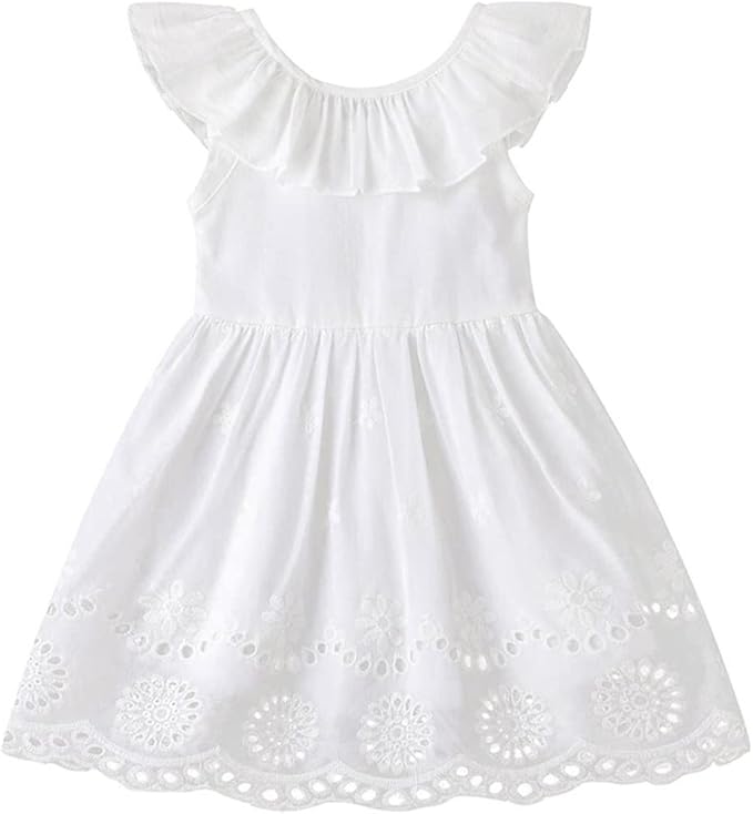 Toddler Baby Girls White Dress Beach Party Dresses Cotton Linen Casual Overall Outfits Onepiece