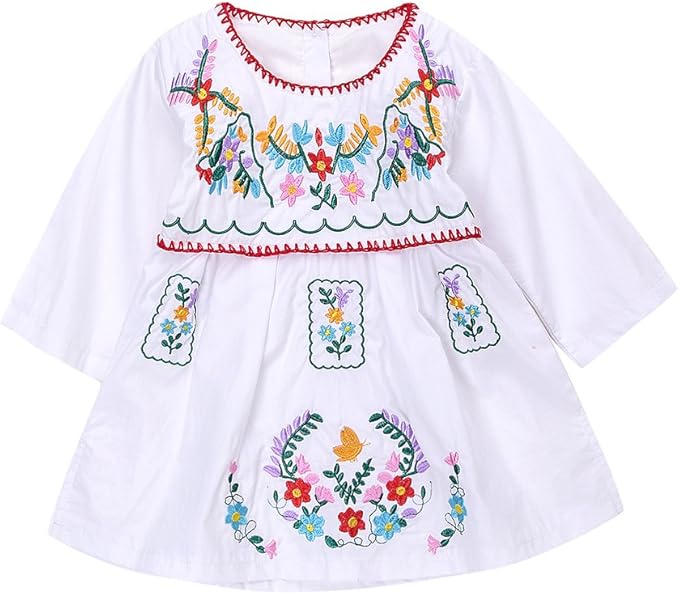 Newborn Toddler Baby Girls Ethnic Embroidery Floral Dress Long Sleeve Party Sundress Skirt