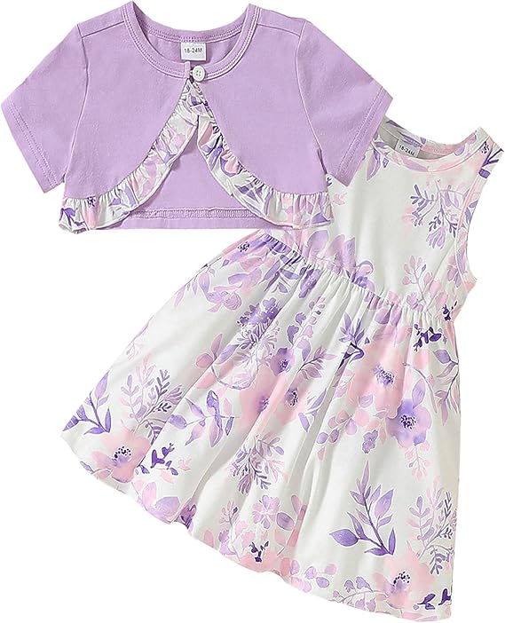 Toddler Baby Girls Dress and Cardigan Set Baby Girl Floral Print Sleeveless Dress and Coat 2Pcs Outfits Set