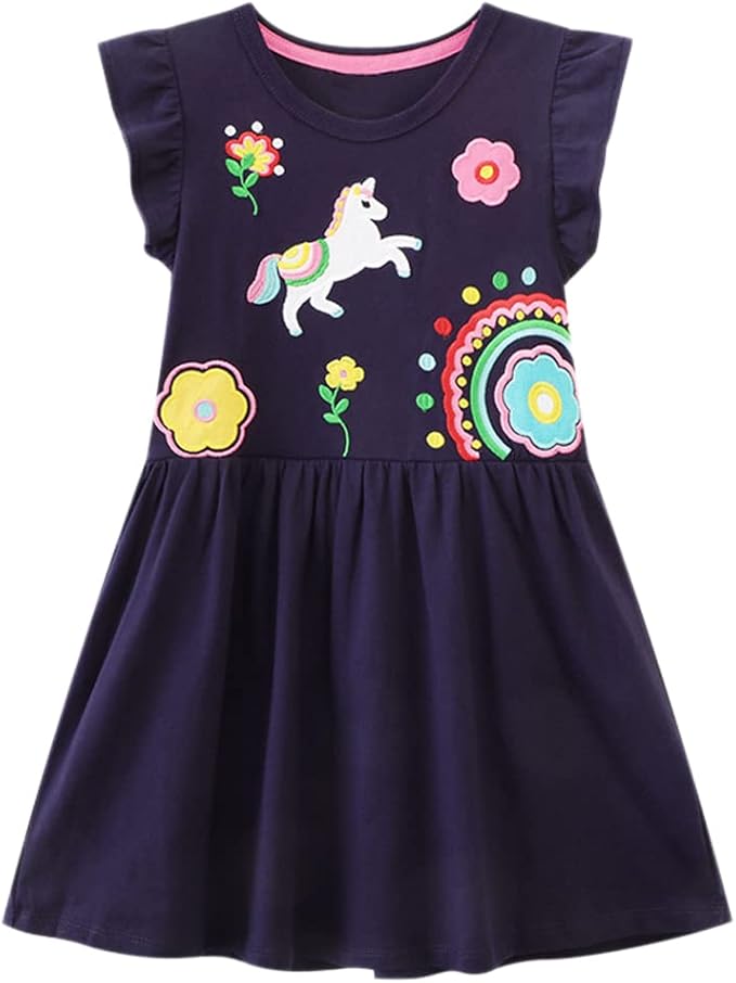 Girls Casual Dress Little Girl Summer Spring Fall Cute Short Sleeve and Long Sleeve Dress Clothes 1-8 Years