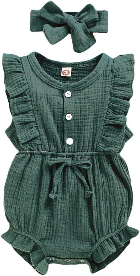 Newborn Baby Girl Sleeveless Rompers Summer Clothes Cotton Bodysuit with Headband