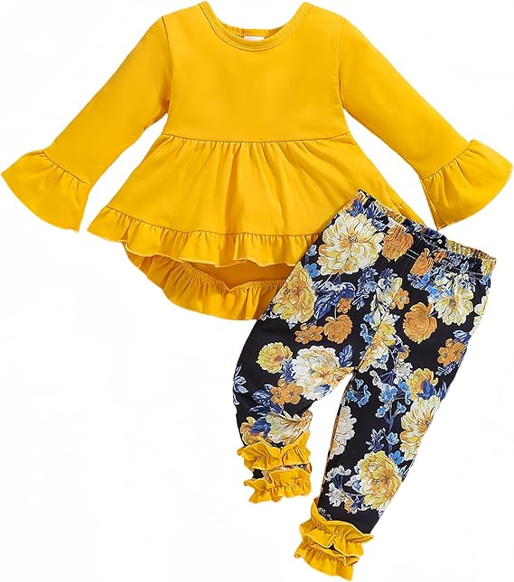 Baby Girl Clothes Infant Toddler Girl Outfit Long Sleeve Shirts Top Rufffle Pants Little Girls Clothes