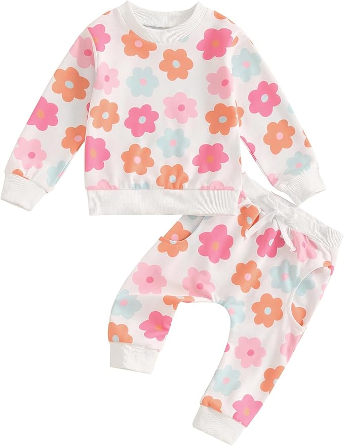Fall Baby Girl Clothes Set Newborn Infant Crewneck Long Sleeve Sweatshirt Tops Pant Sweatsuit 2 Piece Outfits