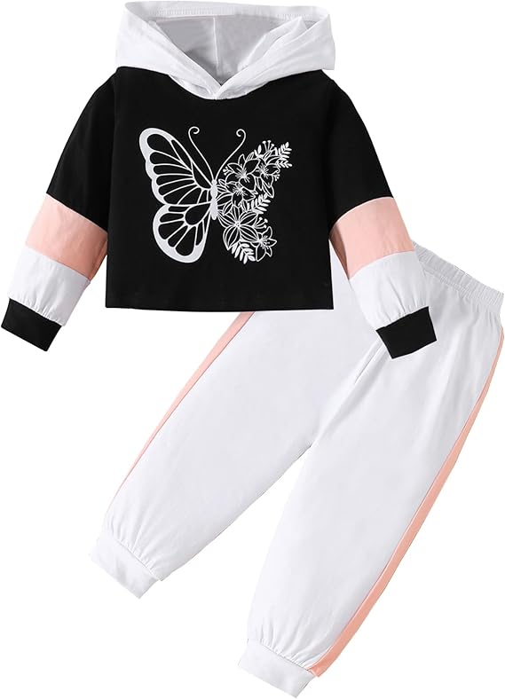 Toddler Girl's 2Pcs Clothing Sets Long Sleeve Butterfly Printed Hoodie Sweatshirt Pants Set Fall Winter Clothes
