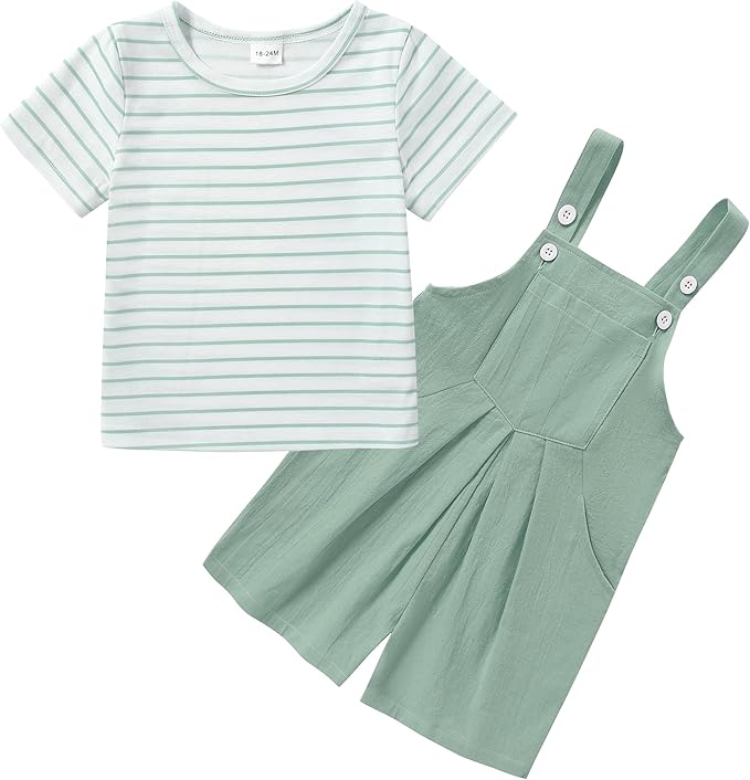 Toddler Girl Clothes, 2Pcs Baby Girl Outfits Spring/Summer Stripe/Floral T-Shirt+Bib Overall Shorts Clothing Set 1-5T