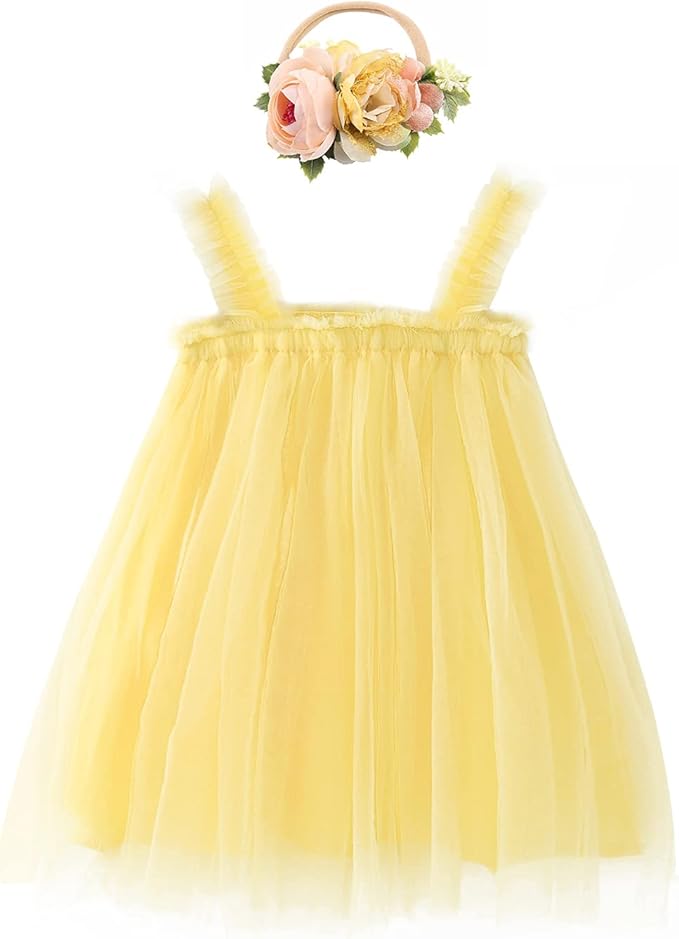 Toddler Baby Girl Tutu Tulle Princess Summer Dress+Flower Headband Party Photoshoot