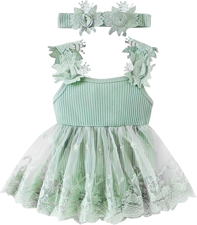 Newborn Baby Girl Clothes Infant Girls Lace Romper Dress Sleeveless Bodysuit Cute Flowers Skirt Outfits 0-18 Months