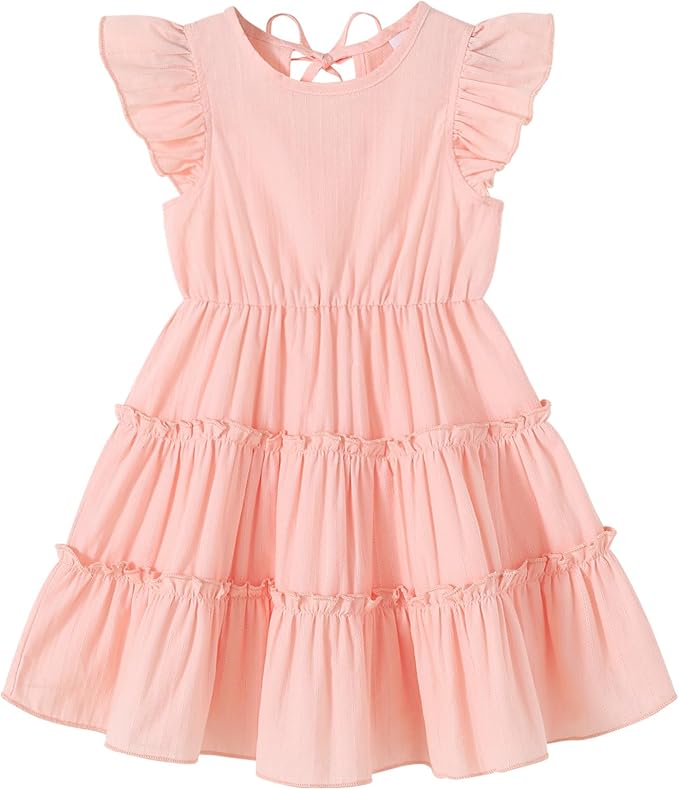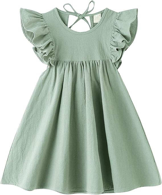 Little Girls Cotton Dresses Flutter Short Sleeve Summer Dress for 2-7 Years Old