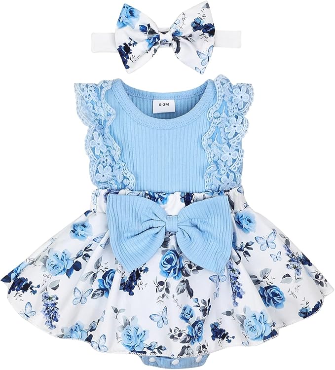 Baby Girl Clothes Newborn Romper Dress Infant Lace Ruffle Sleeveless Summer Outfits with Headband 0-12 Months
