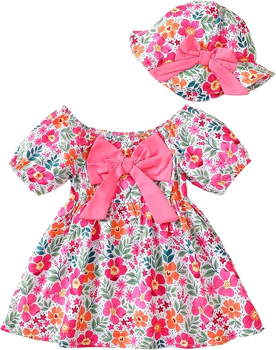 Toddler Baby Girls Dresses Summer Ruffle Short Sleeve Dress Floral Cute Sundress Hat Casual Outfits 1t 2t 3t Girl Dress