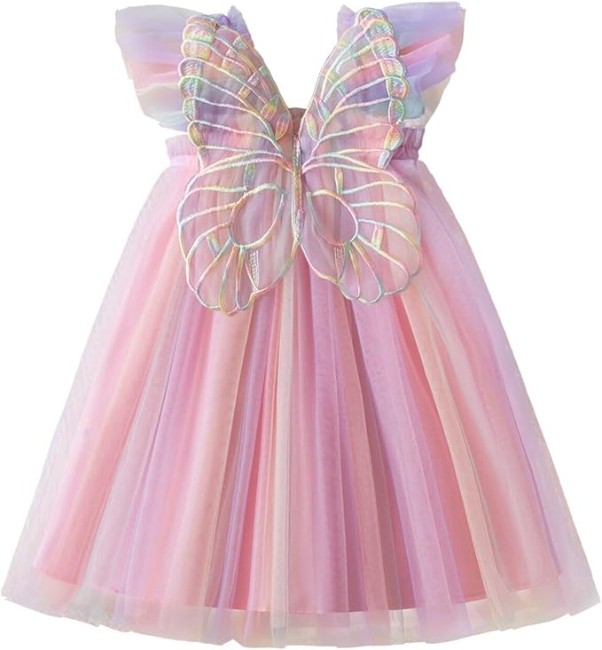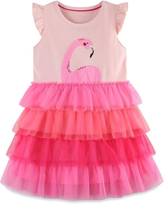 Baby Girls Tiered Dress Flutter Sleeve Twirly Unicorn Sundress Kids Cute Outfits Toddler Summer Dresses 2-8 Years Old