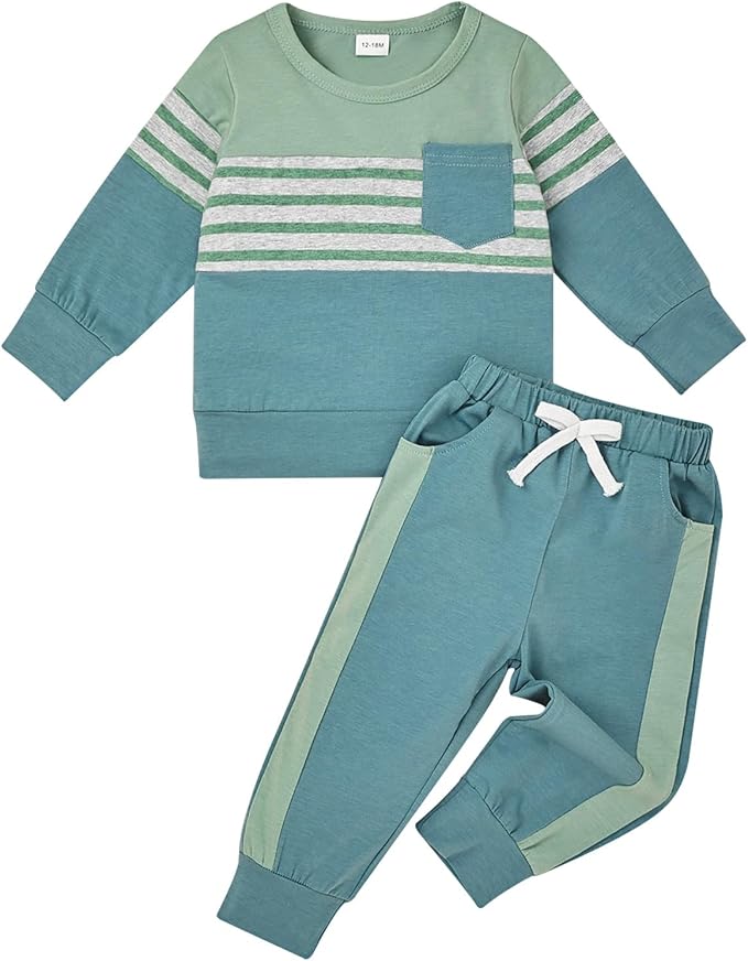 Toddler Boy Fall Winter Outfit Boys Color Block Clothes Kids Sweatshirt + Jogger Pants Clothing Set Sizes (2T-7)