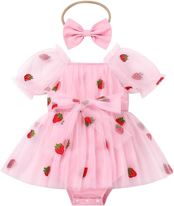Baby Girl First Birthday Party Dress Cake Smash Outfit Newborn Princess Tulle Tutu Romper Puff Short Sleeve Bodysuit