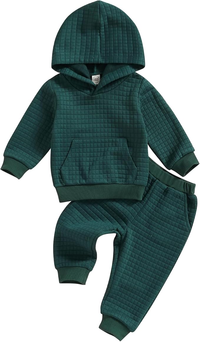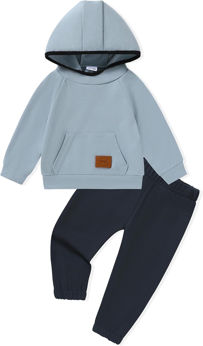 Toddler Baby Boy Girl Fall Winter Clothes Solid Color Hoodie Sweatshirt Jogger Pants Set 2 Piece Sweatsuit Outfits