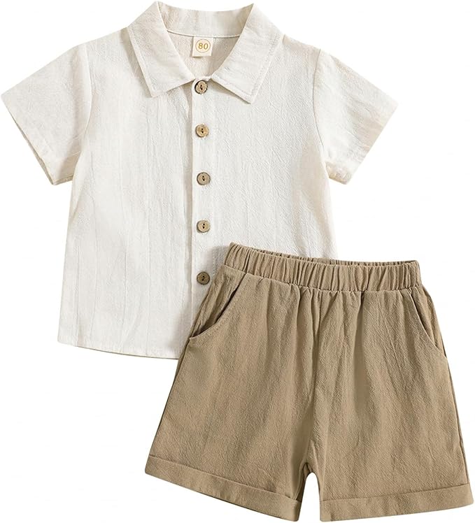 Toddler Baby Boy Linen Outfit Button Down Shirt Plain Shorts Cute Infant Newborn Photoshoot Clothes Summer 2Pcs Set