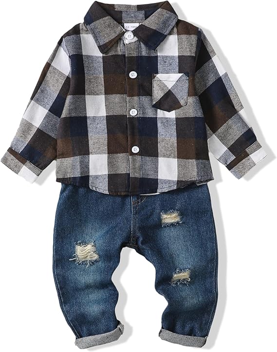 Toddler Baby Boys Clothes Outfits Kids Hoodie Flannel Shirts Set Plaid Hooded Tops +Jeans Pants Fall Winter 2-6T